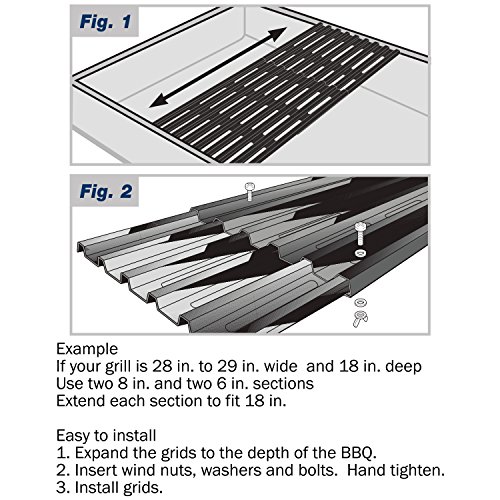 EASY TO INSTALL - When fixing the two grates together, you can slide the smaller grate into the bigger one and hand tighten the nuts and bolts. Finally, you can put them onto the grill surface.*Be aware that the number of grates you need depends on the size of your grill surface.