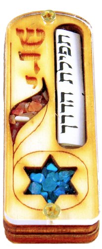 Car Mezuzah - Handmade In Israel Shaddai Star of David Wood and Gem Stone Design by IsraelInAmerica