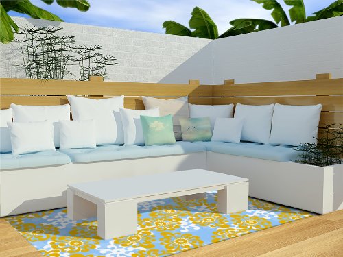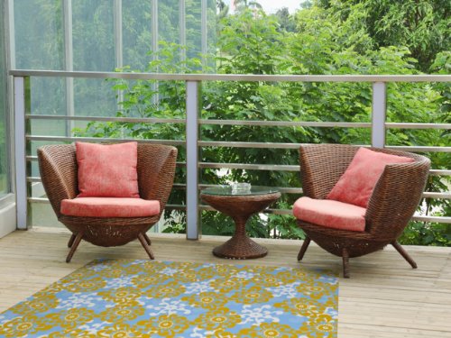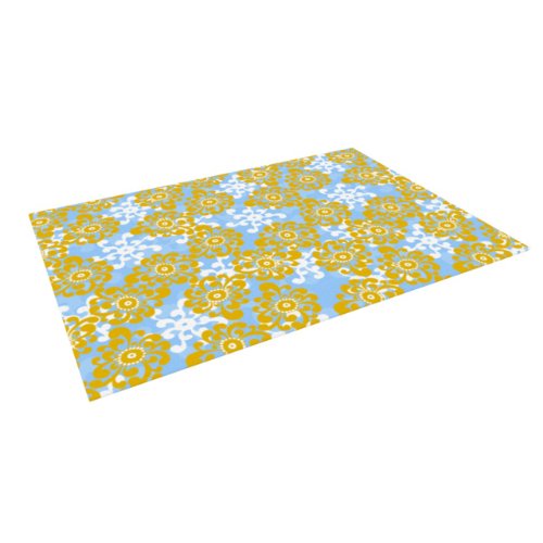 Kess InHouse Nandita Singh "Blue and Yellow Flowers Alternate" Gold Floral Indoor/Outdoor Floor Mat, 4-Feet by 5-Feet
