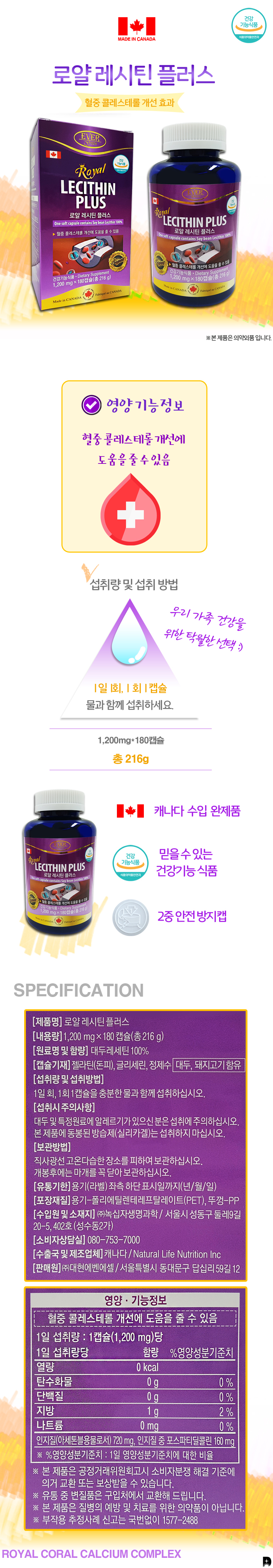 ◆Authentic◆[Nutrition Canada] 1200mg x 180ea Premium Lecithin Plus