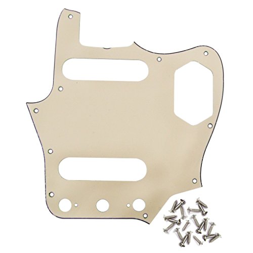 Studio : iknmusic Publisher : iknmusic Product Description For USA Standard Vintage Fender Style Jaguar Guitar.Color: CreamJaguar Style Guitar pickguard Mounting screws.3 Ply 10 Screw holes in the side of the pickguard.PVC MaterialAnti-scratch to protect the bass guitar.Package Included:1 Pcs Pickguard 25pcs mounting screws 0