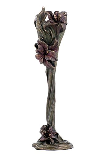 7 Inch Victorian Candle Receptacle with Purple Lily Blossoms