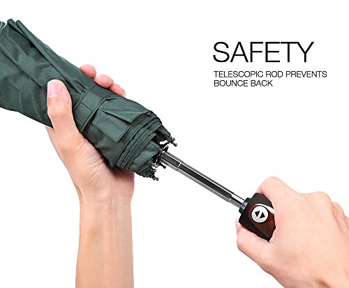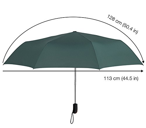 -. Feature : Mit seinem robustem Aluminium und acht unzerbrechlichen Stahlrippen, ist dieser Regenschirm in der Lage starken Winden zu trotzen ohne sich zu verbiegen, zu brechen oder sich umzuklappen / Komfort und Sicherheit kommen zusammen mit einem ein-Klick-Knopf um den Regenschirm zu öffnen und zu schließen, und die speziell designte Teleskopstange verhindert das Zurückspringen, wenn der Schirm nicht vollständig zusammengefaltet ist / Durch die Herstellung aus besonders langlebigem, hochdichtem, wasserabweisendem Material, werden Tropen problemlos um sie trocken zu halten / Gefaltet besitzt der Regenschirm eine Handtaschen-Größe von 13 Zoll (33 cm) , der automatisch faltbare PLEMO Reiseregenschirm öffnet sich bis zu einer großzügigen Größe von 27,6 Zoll (70 cm) und besitzt einen Durchmesser von 44,5 Zoll (113 cm) und damit ist es groß genug um zwei Erwachsene zu schützen / Verfügbar in vier klassischen Farben: einfaches schwarz, dunkelblau, schokobraun und jägergrün - es war noch nie einfacher sich bei schlechtem Wetter modisch auszustatten