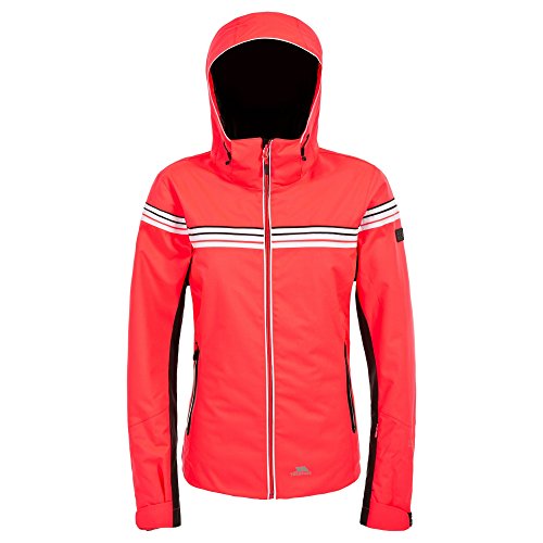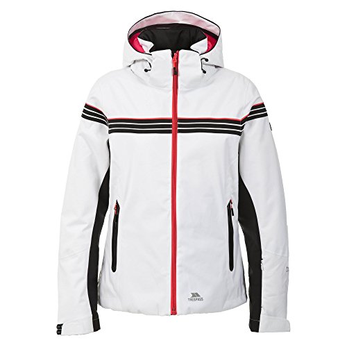 Binding : Apparel Product Description Womens ski jacket. Waterproof 10000mm. Stretch fabric. Breathable 7000mvp. Contrast inner lining with quilted panels. Windproof. Down touch padding. Taped seams. 2 waterproof zip pockets. Ski pass zip pocket. Articulated elbows. Detachable snowskirt. Drawcord hem. Adjustable zip off hood. Shell: 100% Polyester PU Membrane. Lining: 100% Polyamide/100% Polyester. Padding: 100% Polyester. Trespass Womens Chest Sizing (approx): XS/4 - 32in, S/6 - 34in, M/8 - 36in, L/10 - 38in, XL/12 - 40in, XXL/14 - 42in. 0