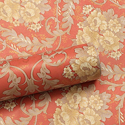 SimpleLife4U Yellow Floral Contact Paper Self-Adhesive Shelf Drawer Liner Red Countertop Sticker 17.7 Inch By 9.8 Feet