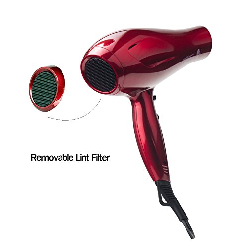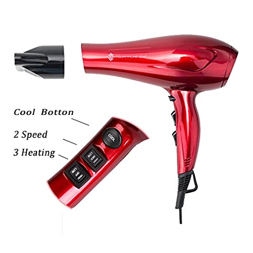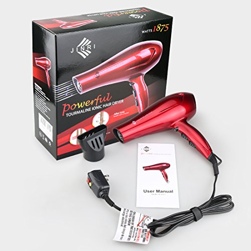 JINRI Professional Negative Ionic Hair Dryer 1875W DC Motor Blow Dryer with Styling Concentrator Nozzle 2 Speeds 3 Heat Settings Cold Shot Button ETL Certified ,Red