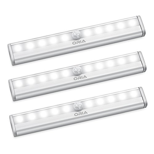 ORIA Motion Sensor Light, 10 LED Sensing Closet Light, Battery Powered Stick-Anywhere Stairs Light, Night Light, Wall Light, Security Safe Light for Bathroom, Cabinet, Wardrobe, Basement (Pack of 3)