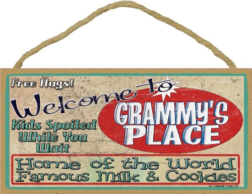 Welcome to Grammy's Place Home of World Famous Milk and Cookies Kids Spoiled While You Wait Sign Plaque Wall Decor 5"X10"