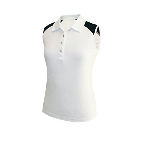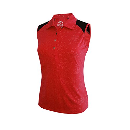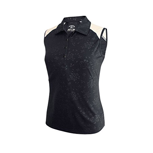 Product DescriptionMonterey Club Ladies Dry Swing Bold Flower Emboss Contrast Sleeveless Shirt #24470