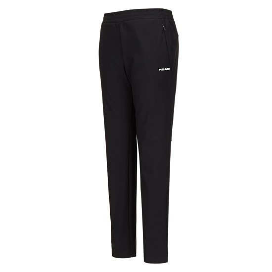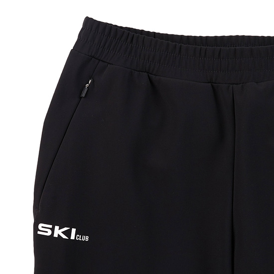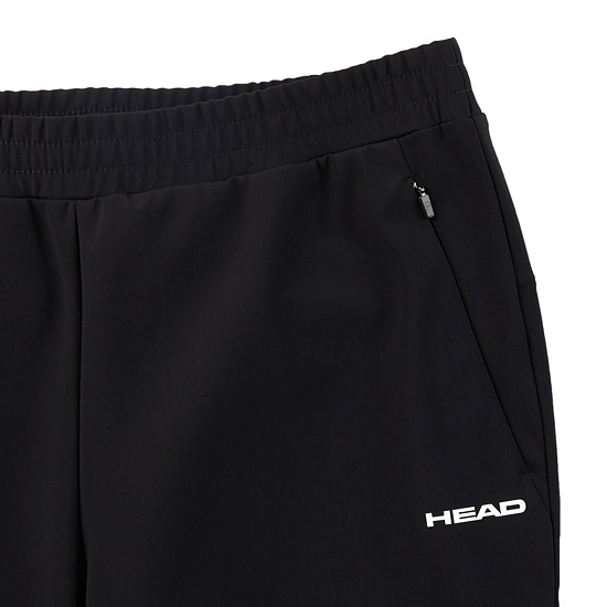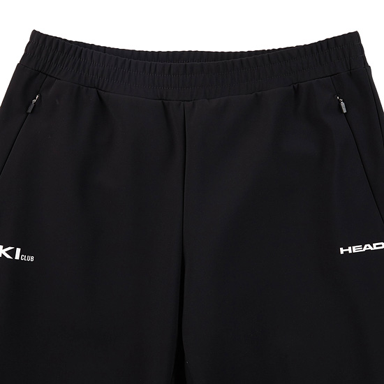 - 심플한 블랙 솔리드 컬러에 로고 프린트로 포인트를 준 트랙수트 팬츠.