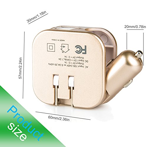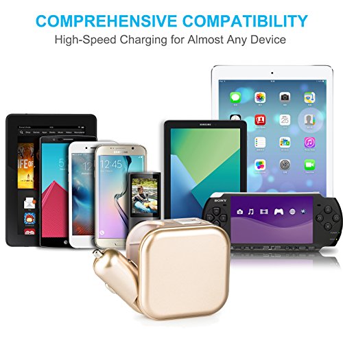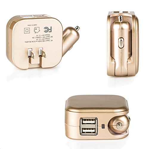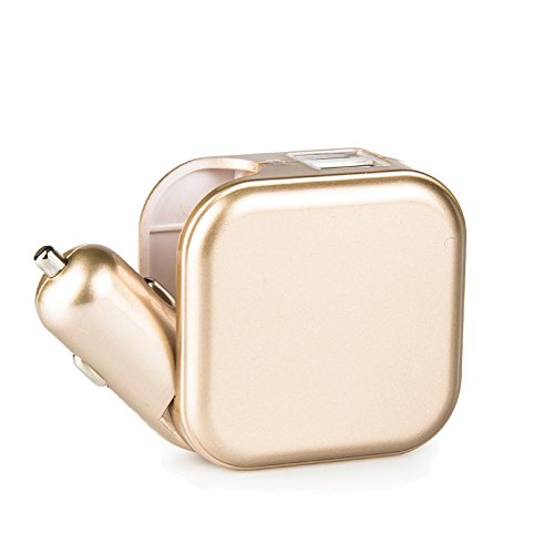 Dteck 2 in 1 Compact Dual USB Wall Charger 2.1A Fast Charging Car Charger Foldable Power Adapter for Amazon Kindle, Apple iPhone, Samsung Galaxy, Google Nexus and Other Smart Devices, Gold