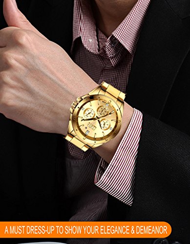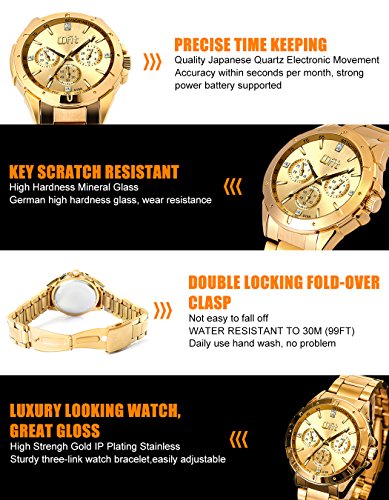 -. Title : Men's Gold Stainless Steel Fashion Luxury Analog Quartz Wrist Watch