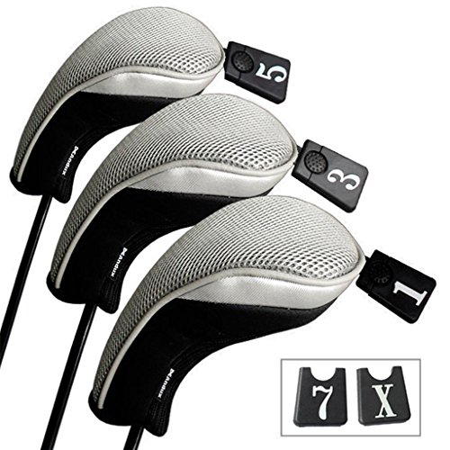 Andux 골프 우드 드라이버 헤드 커버 교환 가능한 번호 택 첨부 와 3 개세트