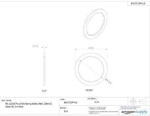INA LS120155 Thrust Roller Bearing Washer, Metric, 120mm ID, 155mm OD, 7mm Width