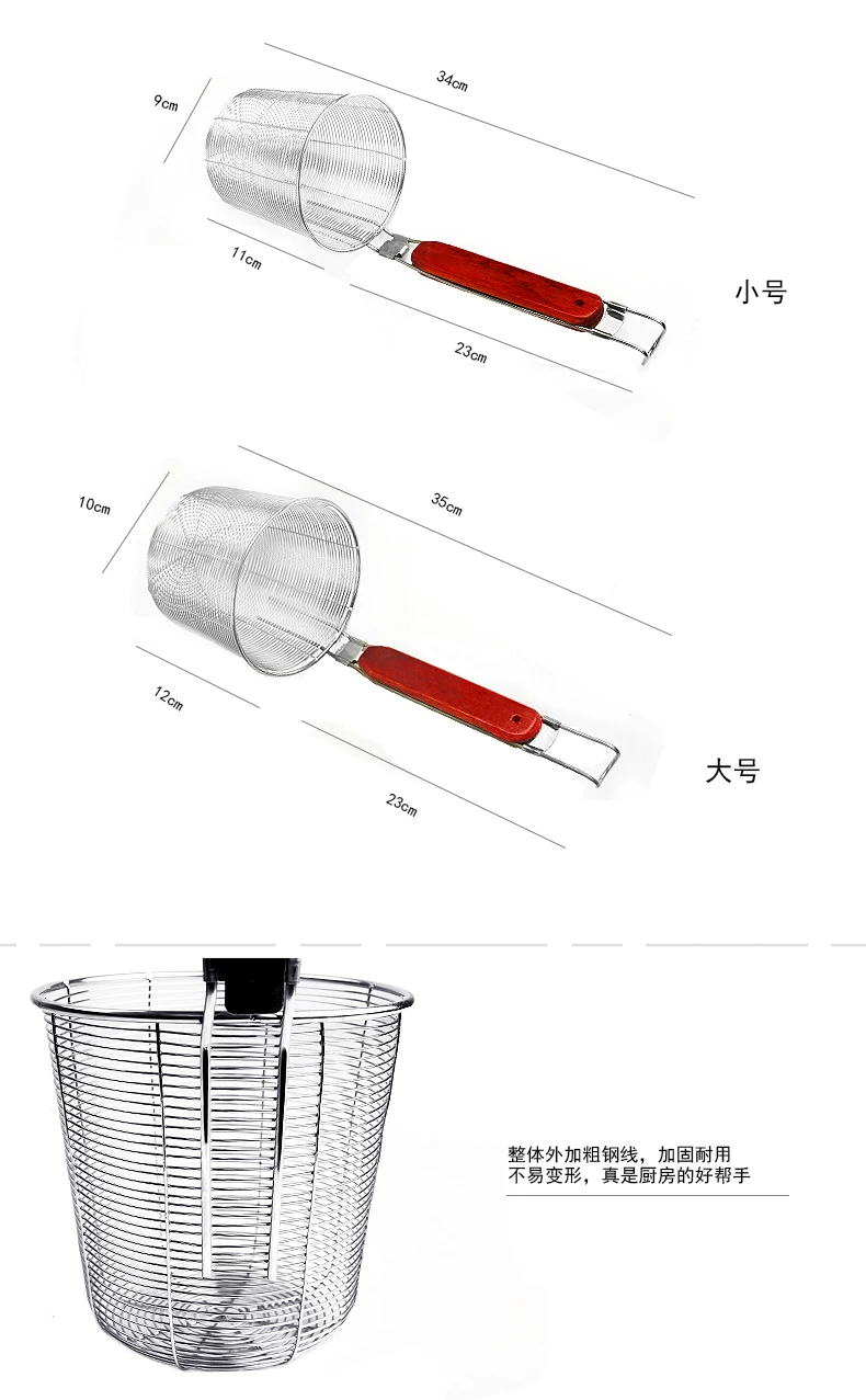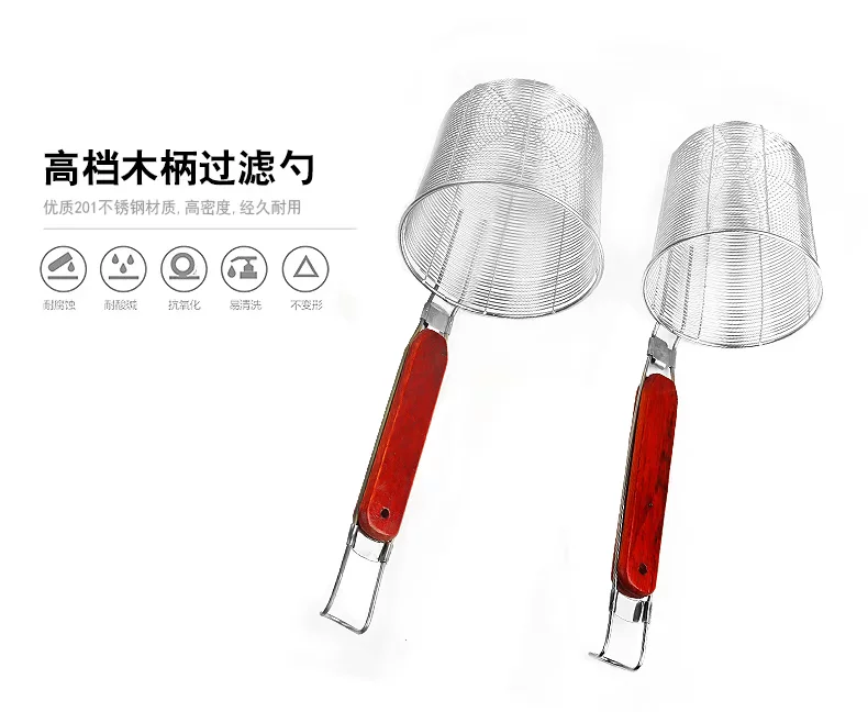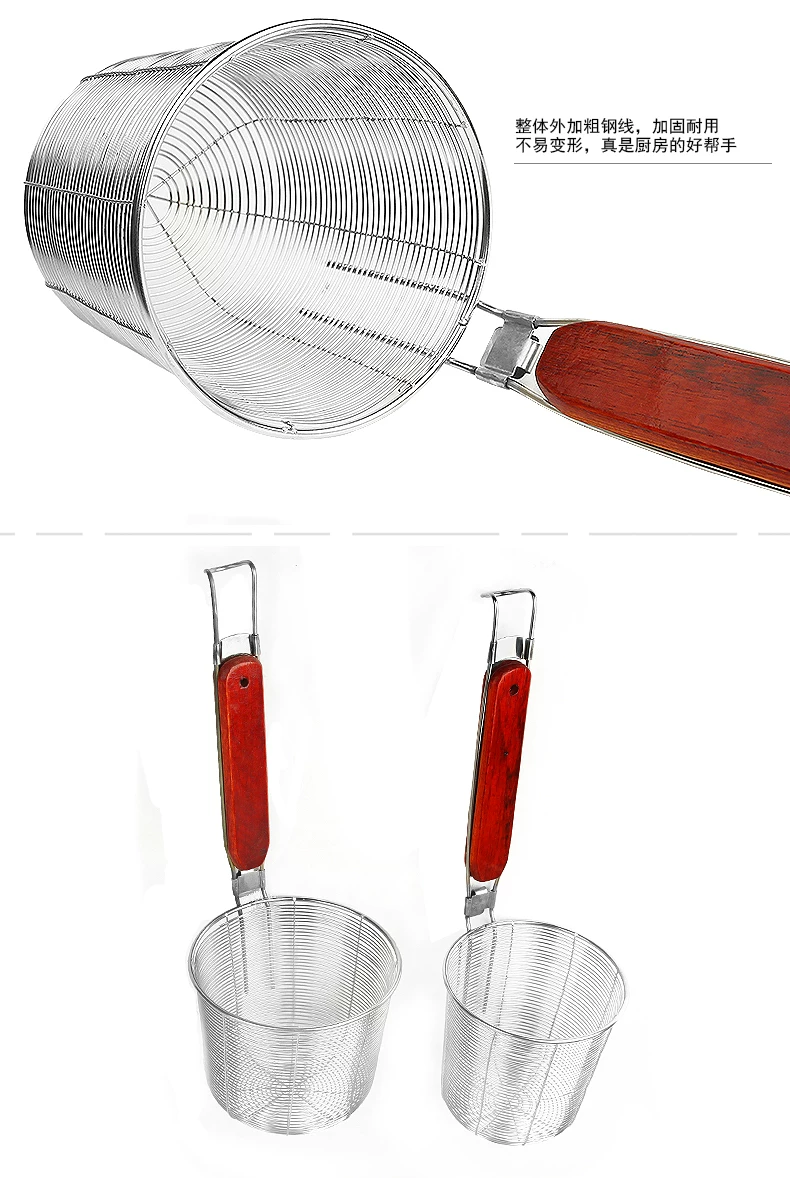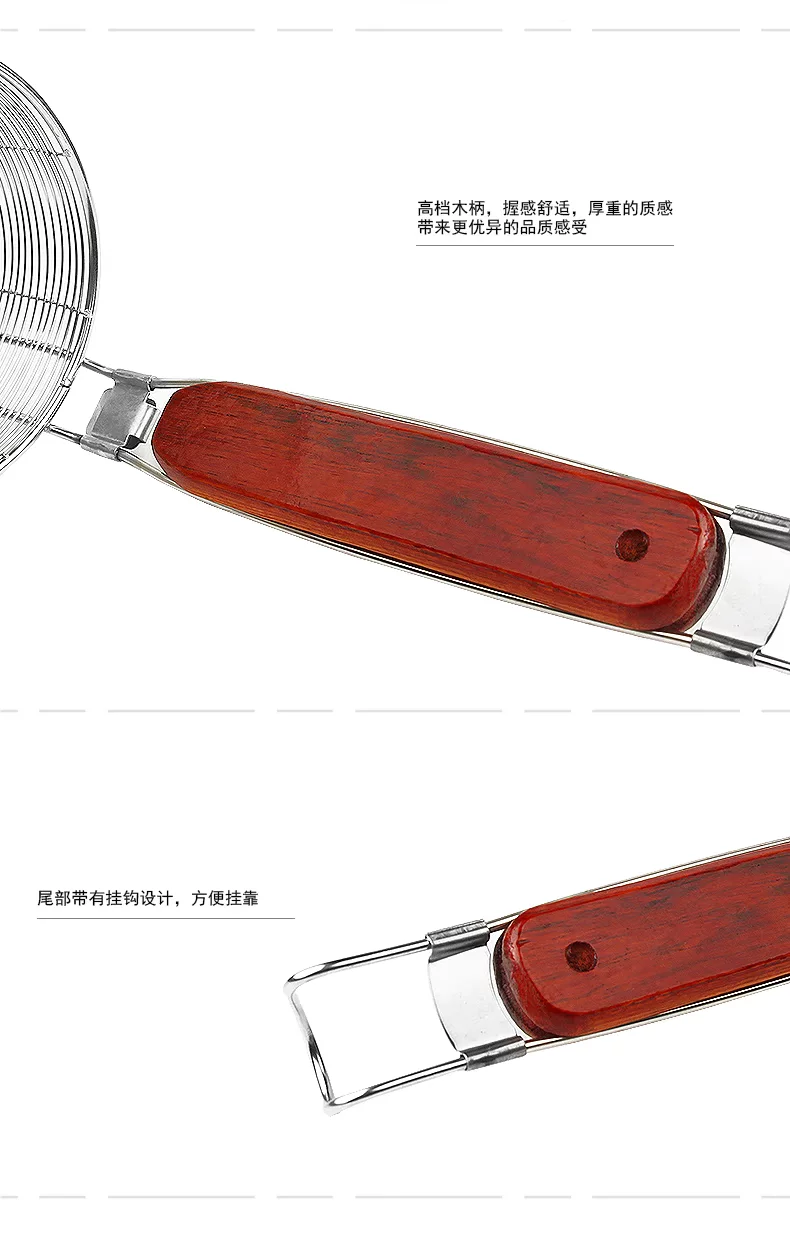 高档木柄不锈钢油炸过滤网 麻辣烫粉捞面大油漏勺 网漏勺笊篱