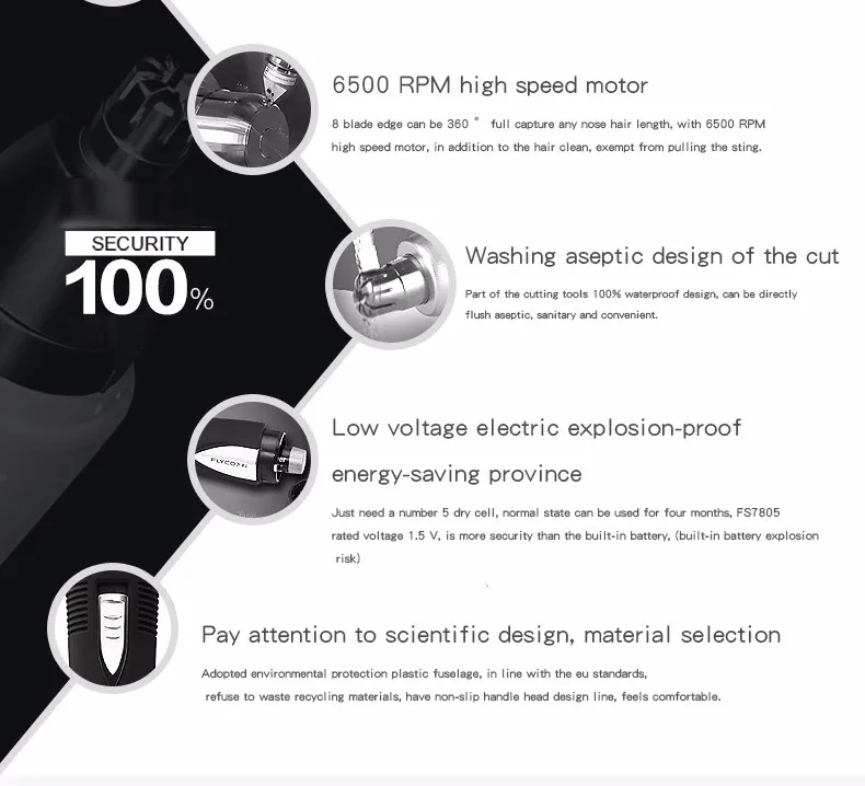 This trimmer is designed for cutting nose and ear hairs. Do not attempt to use it for any other purpose.
