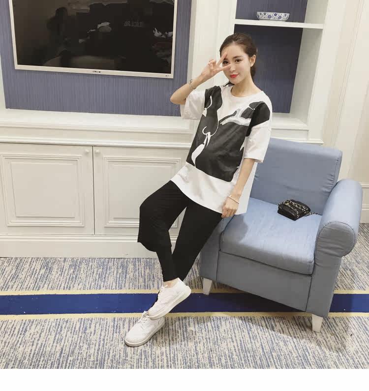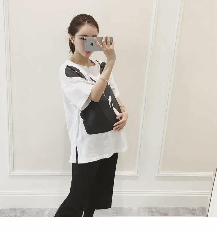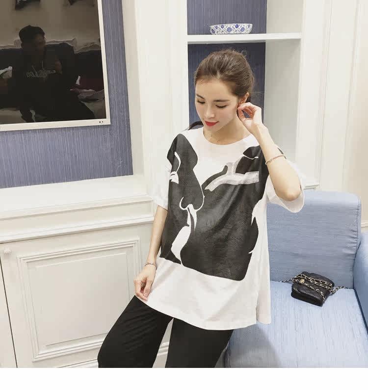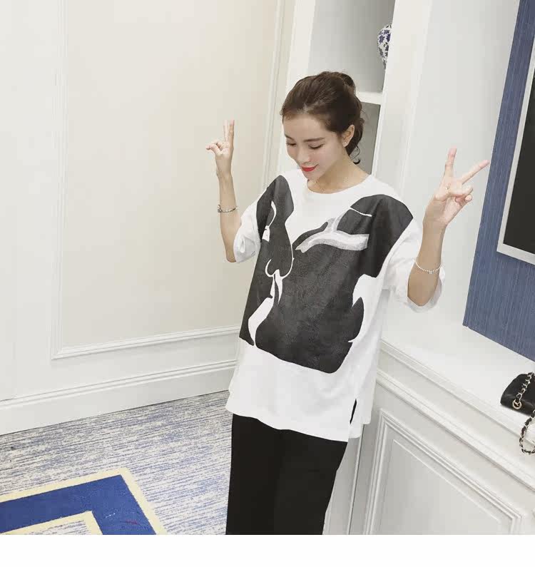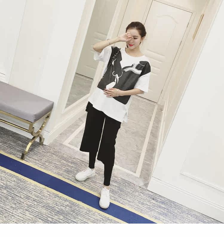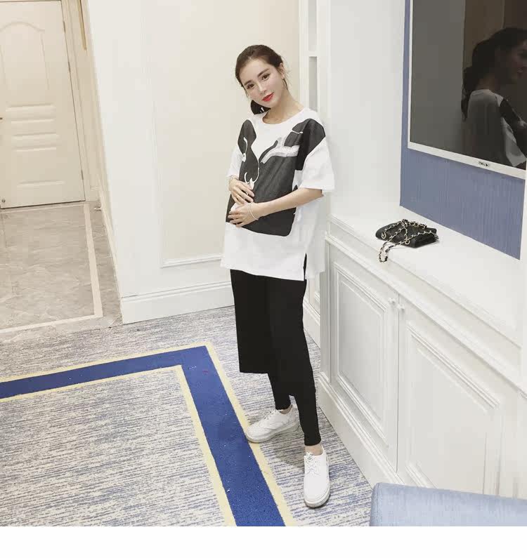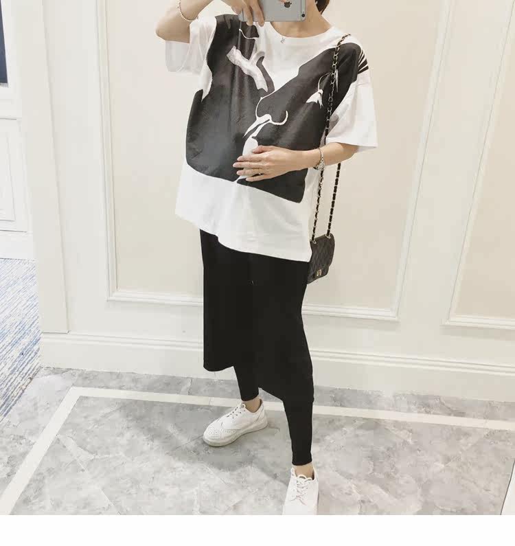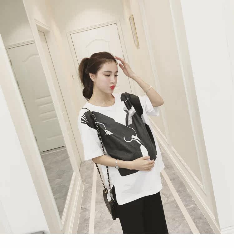 孕妇春装上衣中袖圆领印花t恤新款韩版宽松体恤春季女装孕妇装潮