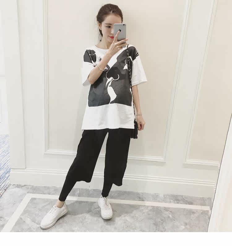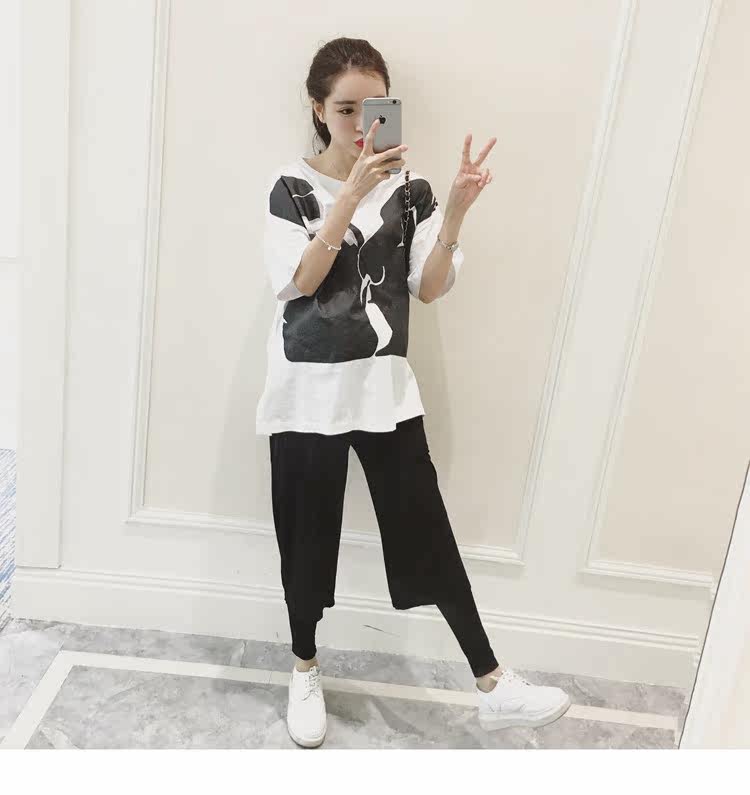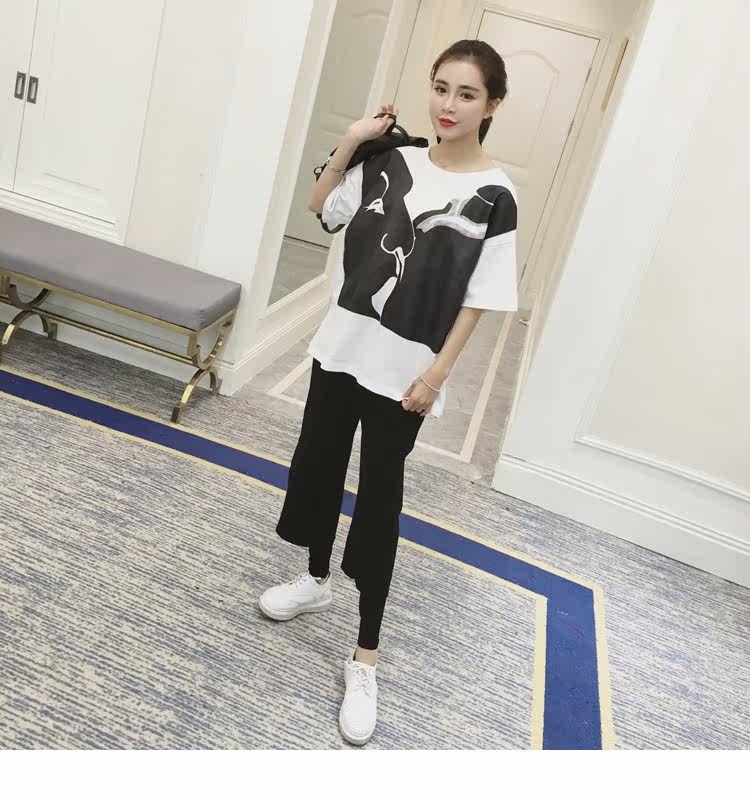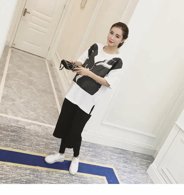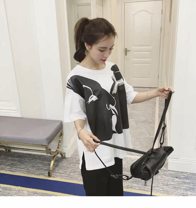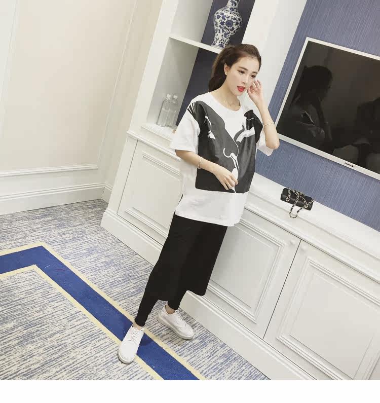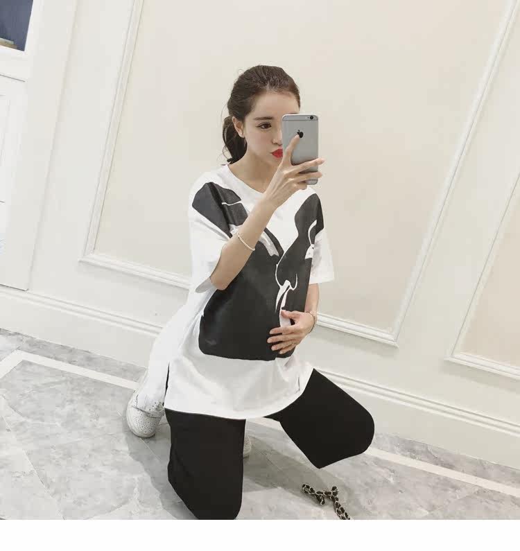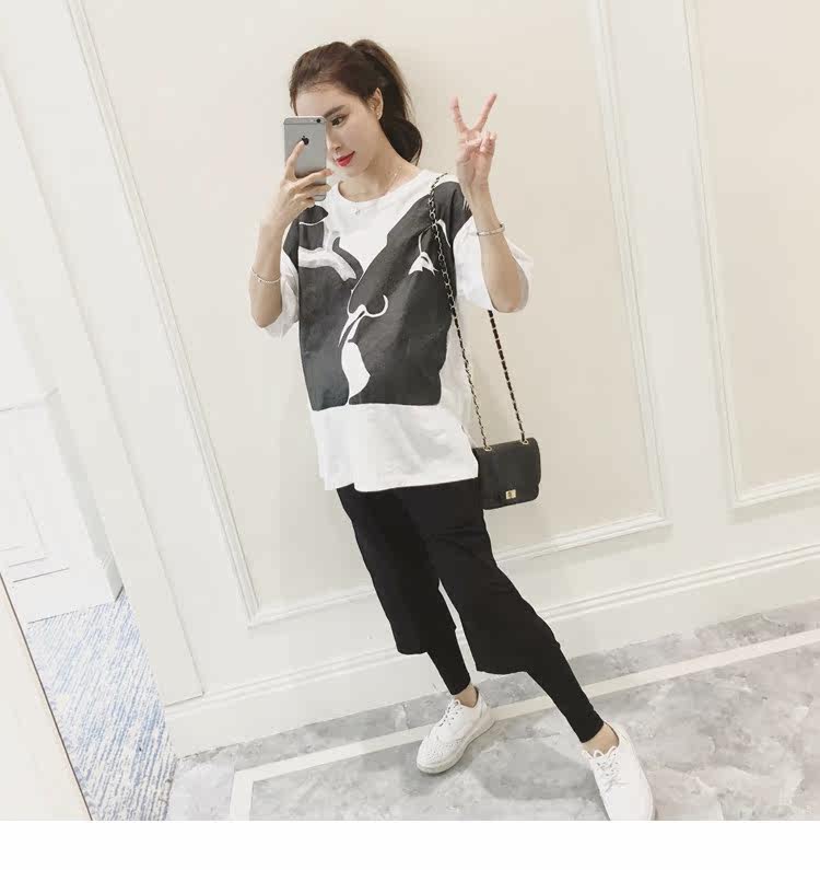 孕妇春装上衣中袖圆领印花t恤新款韩版宽松体恤春季女装孕妇装潮
