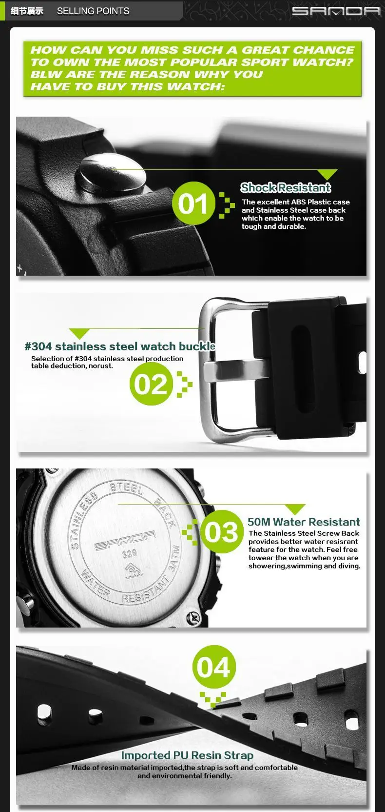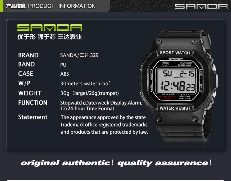 Feature:Back Light,Water Resistant,Shock Resistant,Stop Watch,Complete Calendar,Auto Date,LED display,Diver