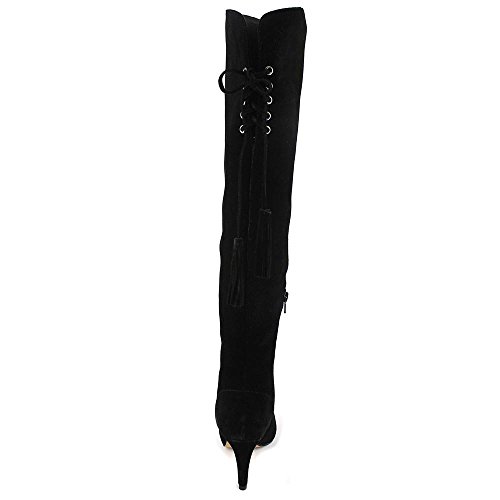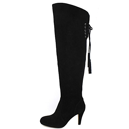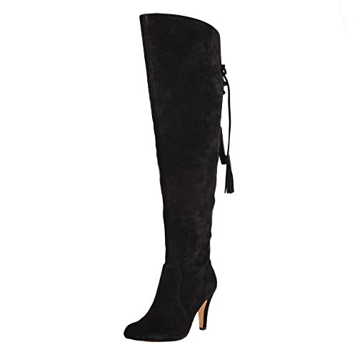 Product DescriptionOver the knee mid heel dress boot with tassle tie detail0
