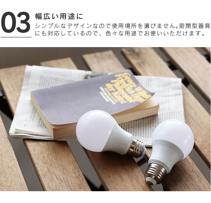 | ポイント | 毎日過ごす空間だからこそ、シンプルにいいものを。 白熱電球・電球形蛍光ランプに近い光の広がりで、お部屋をやさしく明るく照らします。 省エネ法2017年度目標基準を107%達成した、省エネ的にも優れたLED電球。 |