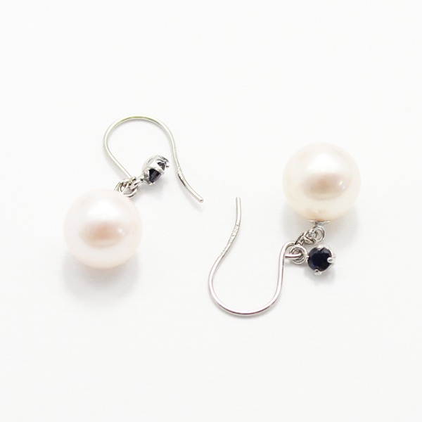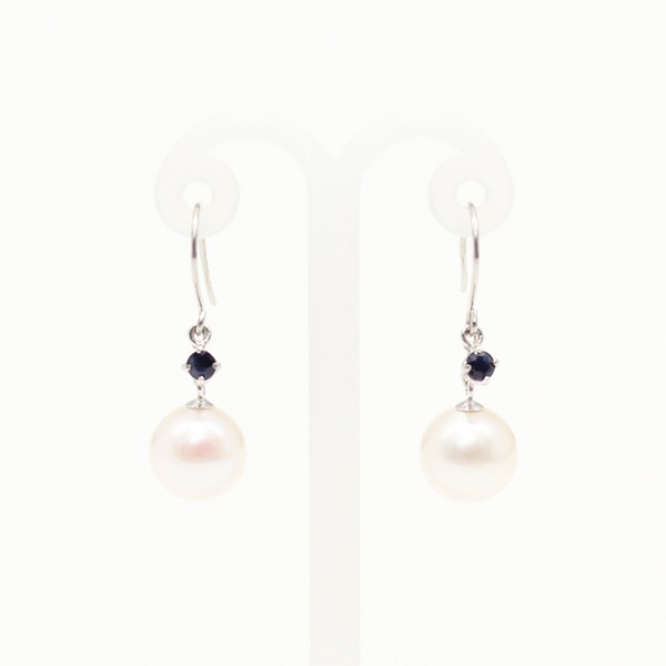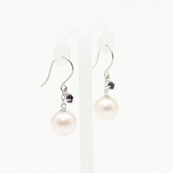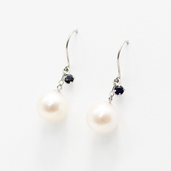 【カラット数】7mm珠真珠2石 サファイア2石合計0.08ct