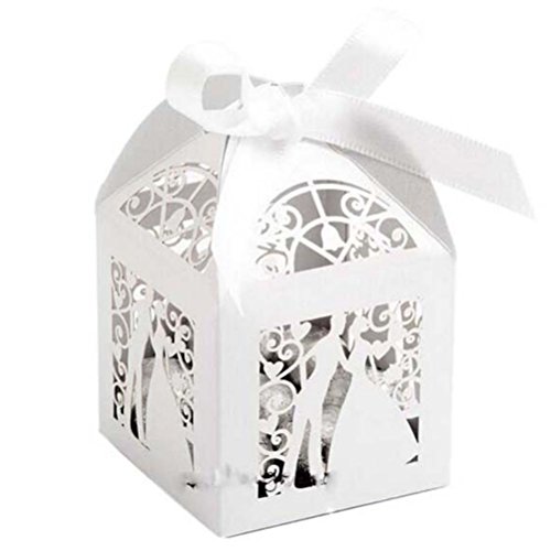 Tinksky 100pcs Couple Design Luxury Lase Cut Party Wedding Favor Ribbon Candy Boxes Gift Box Table Decorations (White)