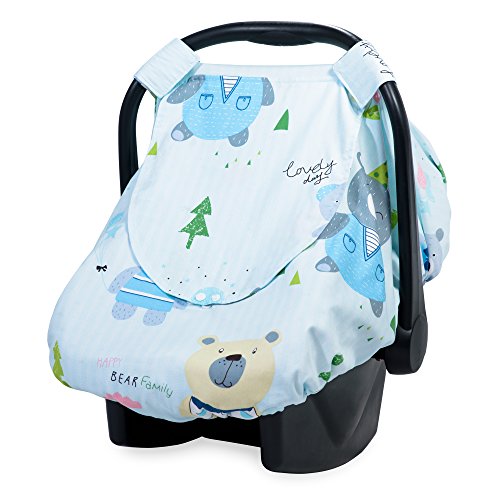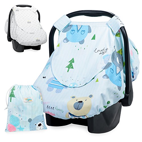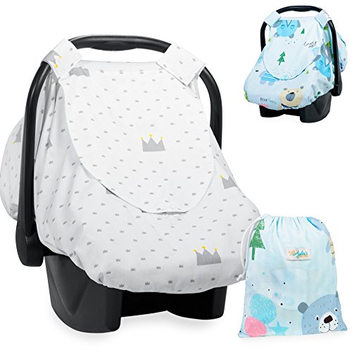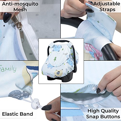 👶 FITS ANY BABY CAR SEAT AND STROLLER: With its versatile design, Aylin's Boutique shower cap style car seat cover fits all infant carriers. It wraps around the car seat, without interfering with the straps which are crucial for car seat safety. The bottom elastic band ensures a snug fit and stays in place even on the windiest days. Adjustable top loop straps with self-adhesive fastener for a secure fit and easy access to the carrying handle.