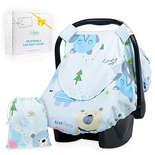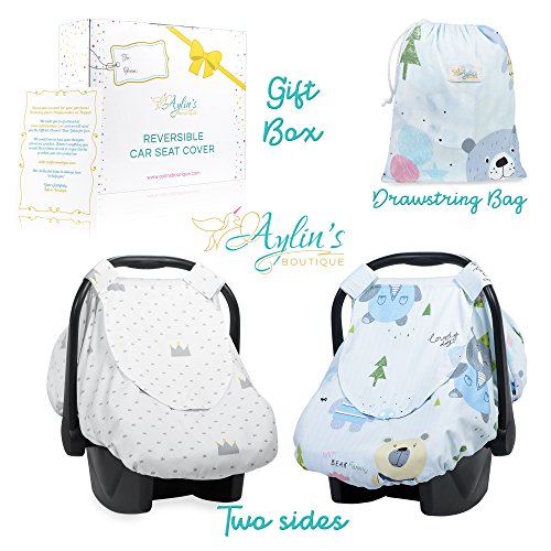 REVERSIBLE CAR SEAT CANOPY | INFANT CAR SEAT COVER FOR BOYS OR GIRLS | BLUE AND WHITE NURSING COVER, ZIPPED ANTI-MOSQUITO MESH BY AYLIN'S BOUTIQUE | PERFECT GIFT SETS FOR BABY SHOWER