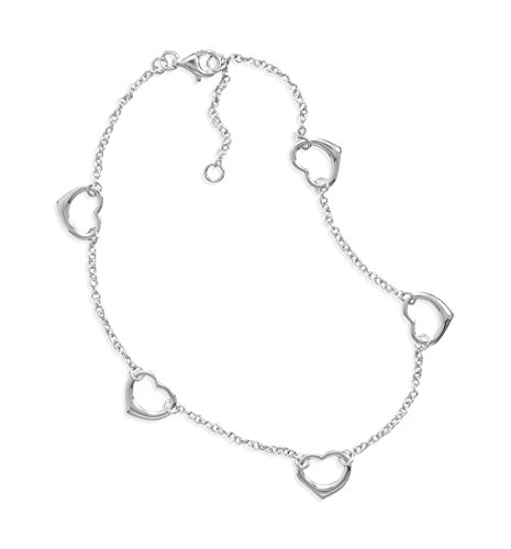 -. Title : Anklet with Five Open Heart Charms Rhodium over Sterling Silver Non-tarnish