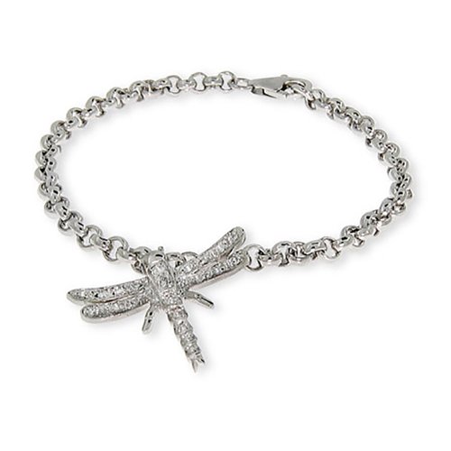 -. Title : Sterling Silver CZ Dragonfly Charm Bracelet