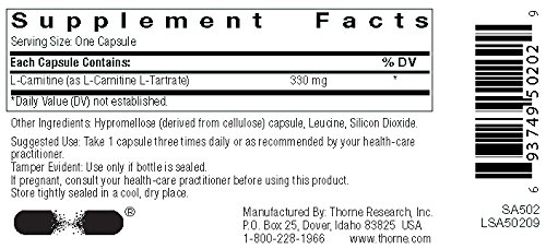 Thorne Research - L-Carnitine - Amino Acid Supplement for Heart and Skeletal Muscle Support - 60 Capsules