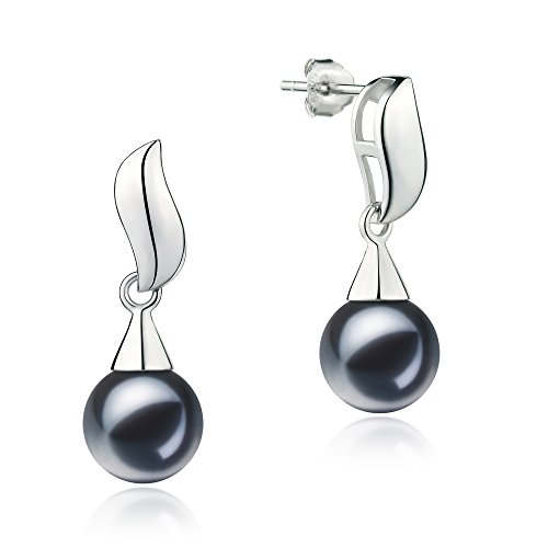 -. Title : Edith Black 7-8mm AAAA Quality Freshwater 925 Sterling Silver Pearl Earring Pair