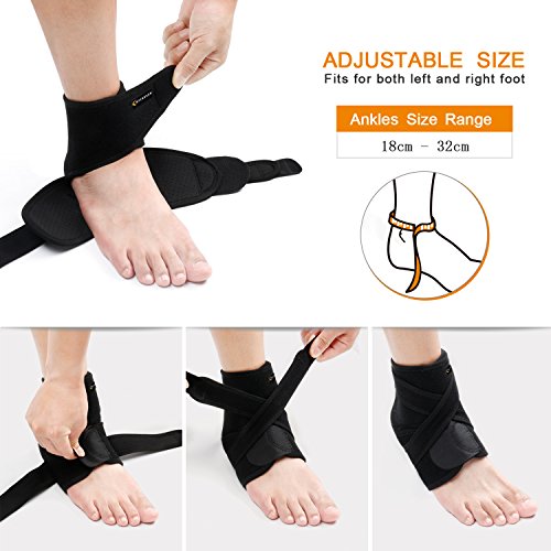 【One size fit all-Adjustable customized ankle brace】This ankle support for running is made of high quality elastic nylon material,and the adjustable Velcro straps design makes this ankle support fits different ankle size from 18-32cm,this ankle brace for women is suitable for both left and right foot.