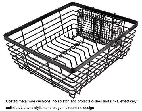 -. Title : ESYLIFE Dish Drainer Drying Rack with Silverware Basket, Black