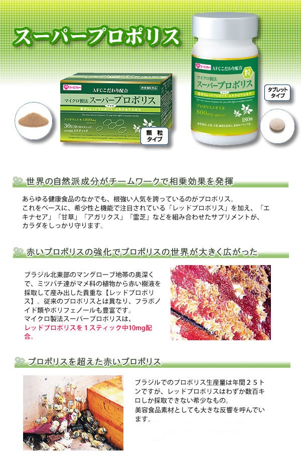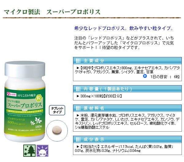 | 根強い人気を誇っているプロポリス。これをベースに希少性と機能で注目されているレッドプロポリスを加えエキナセア・甘草・アガリクス・霊芝などを組み合わせたサプリメント! |