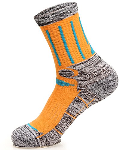 -. Feature : 80%Cotton 17%Chinlon 3%Spandex / Comfortable: A reinforced heel area and extra cushioning in the foot area for added comfort / The Y- Heel Tab Helps With Slipping Your Socks On and Off. Great elasticity and stay up / Multi functional technical socks.Midweight extra pile cusion padding in the heel and ball protect the foot from shear and prevent painful blisters / Moisture wicking,anti-bacterial. Ideal for outdoor sports,Camping and hiking,climbing,trekking,outdoor trail, running,walking socks