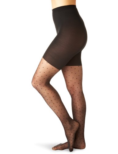 Feel sexy in these swiss dot pattern shaping pantyhose, Sheer, stretch nylon. Light control shapes tummy, hips, thighs and rear, Offers a smooth look thanks to non-binding waistband. Invisible reinforced toe and cotton gusset SPANX, Style Number: 397.Feature