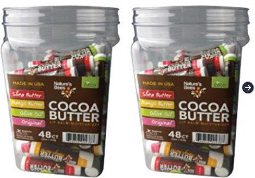 Includes:(24) Tubes of Cocoa Butter Lip Balm Moisturizer by Nature's Bees (6 Original, 6 Olive Oil, 6 Shea Butter, 6 Mango Butter), New In Retail Packaging