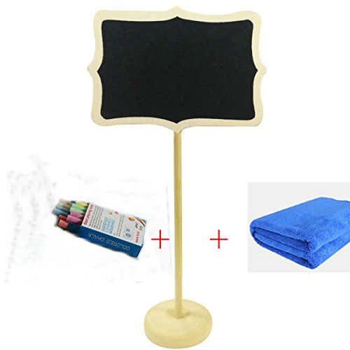 Zorpia® Mini Chalkboard Tag with Stand Rectangle Chalkboard Blackboard with Stand Wedding Party Table Numbers Place Card Favor Tag Plant Marker, Set of 10 with Colorful Chalk and cleaning cloth
