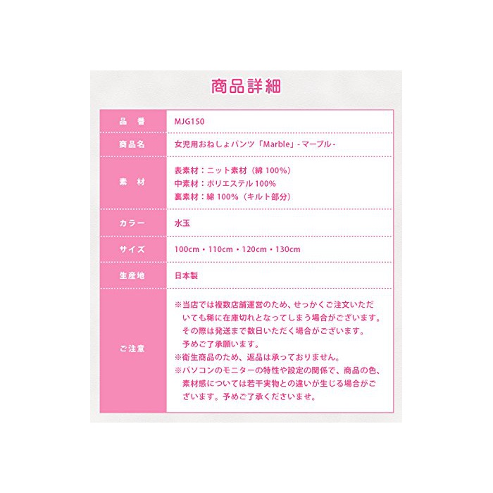 원본상품명: 女の子用 おねしょピ?パンツ「マ?ブル」 (110cm)