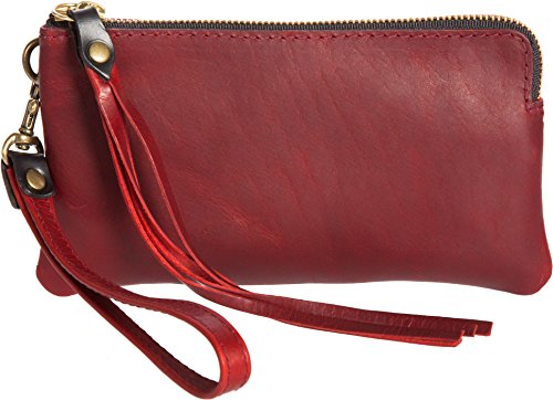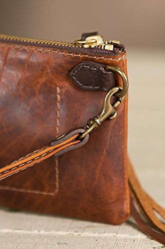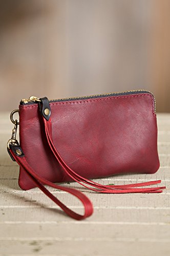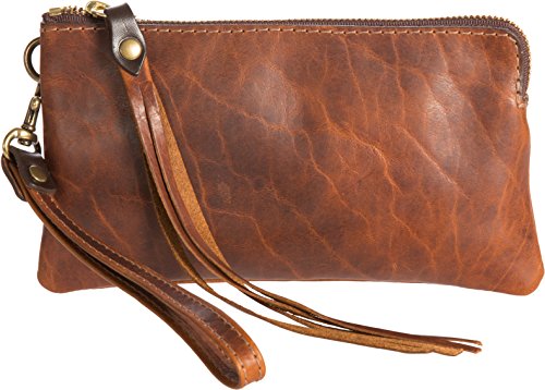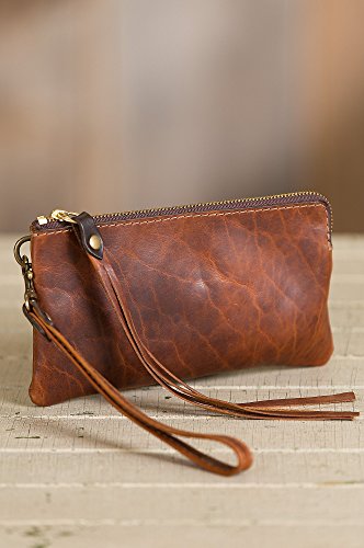 Studio : Overland Sheepskin Co. Publisher : Overland Sheepskin Co. Product Description As a handbag accessory or an elegant stand-alone purse, the Santa Fe Wristlet never runs out of ways to be of service. Grab it as an evening clutch or wear it on your wrist for shopping and you're ready to go. And when you're heading to work, this purse holds your cell phone or cash and slides right into your handbag or tote. Fashioned of premium Mexican bison leather, the wristlet features a secure zip top closure, an interior leather slip pocket for credit cards or ID, a detachable wrist band, and a brass zipper with decorative fringe tassel. Genuine Bison Leather with Horween Latigo Leather trim. Dimensions: 8.5"W x 4.5"H. Made in the USA. 0