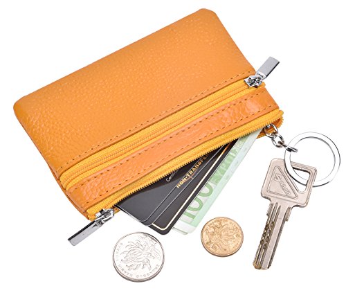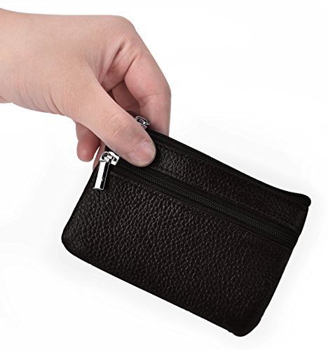 -. Title : DEEZOMO RFID Blocking Genuine Leather Zipper Change Purse Coin Wallet with Key Ring