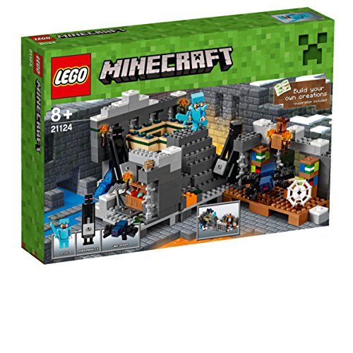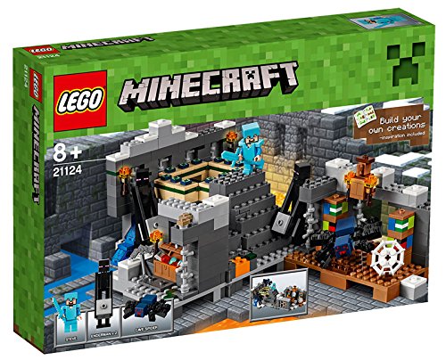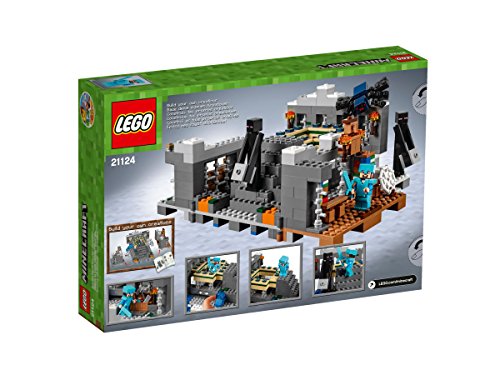 -. Feature : Enthält Steve als Minifigur sowie 2 Endermen und eine Höhlenspinne. / Enthält eine Bibliothek mit Bücherregalen, einen Plattenaltar sowie ein End-Portal. / Leg deine Diamantrüstung an, greif dir dein Diamantschwert und begib dich dann in die geheime Festung. / Besiege die Höhlenspinne und greif dir die Truhe, die Diamanten, Rotstein und einen Eisenbarren enthält. / Aktiviere die Portal-Funktion, um Steve zum Ende zu befördern.