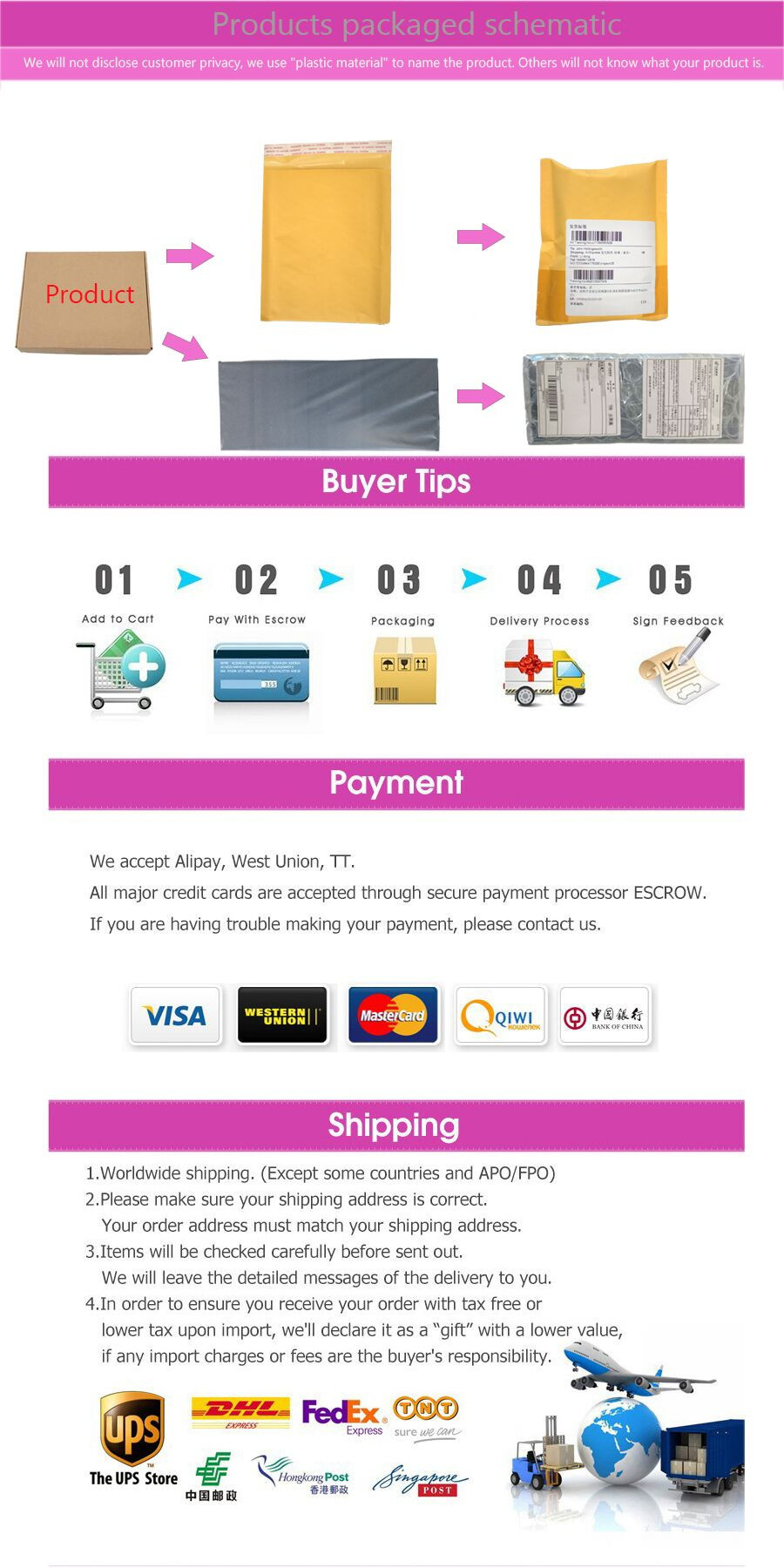In order to protect your privacy, we promise send your products In a secret condition, the packaging will not have any pictures and words about sex toy, No one knows what parcel inside, only you know.