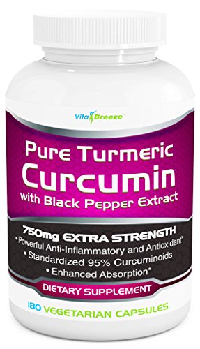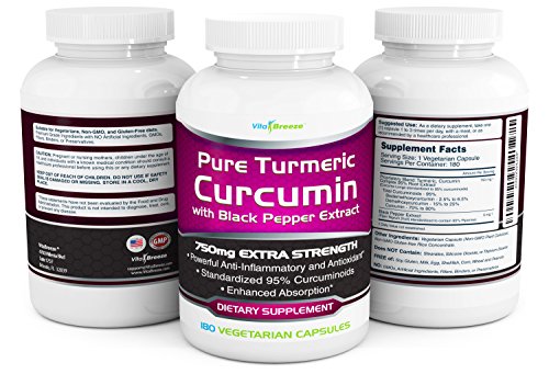 -. Feature : BEST VALUE - 50% MORE POTENT AND 50% MORE CAPSULES - Get 180 Vegetarian Capsules per bottle, that's a 6 month supply! You'll be very hard pressed to find a similar product that provides a POTENT 750mg strength per capsule with the patented (and most trusted source of) Curcumin C3 Complex and BioPerine (black pepper) for enhanced absorption and bio-availability. You're getting the BEST for less this black friday and cyber monday week! / EXTREMELY POTENT, SUPERIOR ABSORPTION, HIGHEST QUALITY - The VitaBreeze Turmeric Curcumin has 750mg of Curcumin, with 5mg of BioPerine (black pepper extract) which is needed for superior absorption. Most competitors only have 500mg per capsule and many don't contain black pepper. Beware of supplements that don't contain Curcumin C3 and BioPerine - they're the most trusted sources, which is why we use them. Start with the best, try it now before we sell out. / LIFETIME GUARANTEE - At VitaBreeze, we stand by our product. If you don't notice a difference after giving our Tumeric Curcumin C3 Complex a try, we don't want you paying a cent. Feel the difference or your money back - no questions asked. / NO GMOs, BINDERS, FILLERS, PRESERVATIVES - Our Turmeric Curcumin supplement is completely pure and safe. There are no GMOs, artificial ingredients, fillers, binders, preservatives or stearates in our supplement. It is also FREE OF soy, gluten, milk, egg, shellfish, corn, wheat, and peanuts. We only include what you need - a potent 750mg of Curcumin with Bioperine (black pepper) for superior absorption. / TESTED FOR PURITY & POTENCY - We're committed to ensuring that every product meets stringent quality control procedures for purity, potency, and safety. Our products are manufactured in an FDA approved facility following strict GMP guidelines to ensure the highest quality and most effective products for our consumers. Get your bottle today, while stocks last.