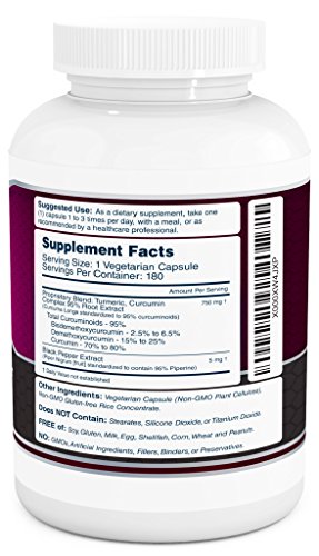 -. Title : Turmeric Curcumin C3 Complex with BioPerine - 750mg per Capsule, 180 Veg. Caps - Contains Black Pepper (For Superior Absorption and Bio-availability). 95% Standardized Curcuminoids For Maximum Potency