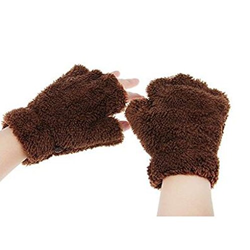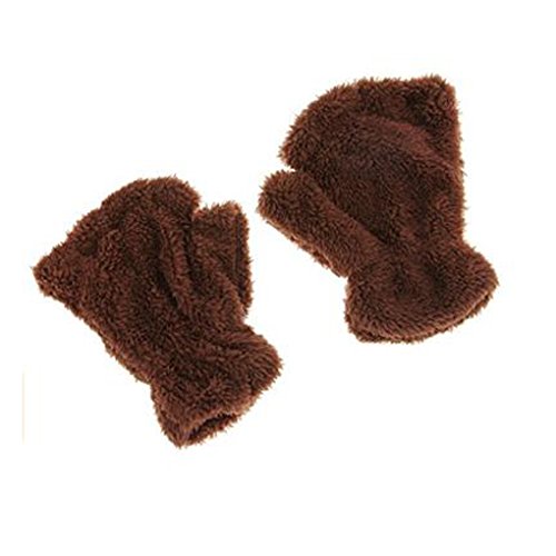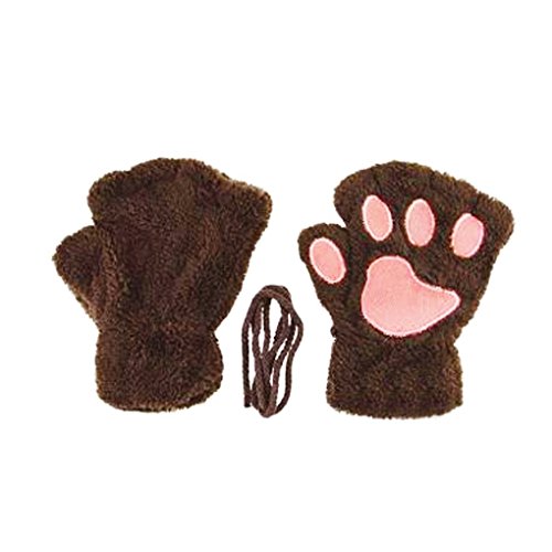 Title : Women Cashmere Cute Cat Claw Bear Paw Fingerless Plush Gloves for Halloween