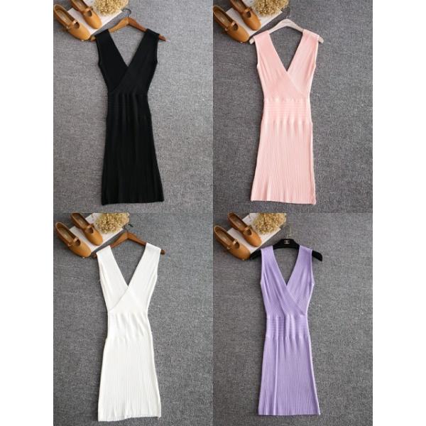 上品なミディアム丈のノースリーブニットワンピースです♪