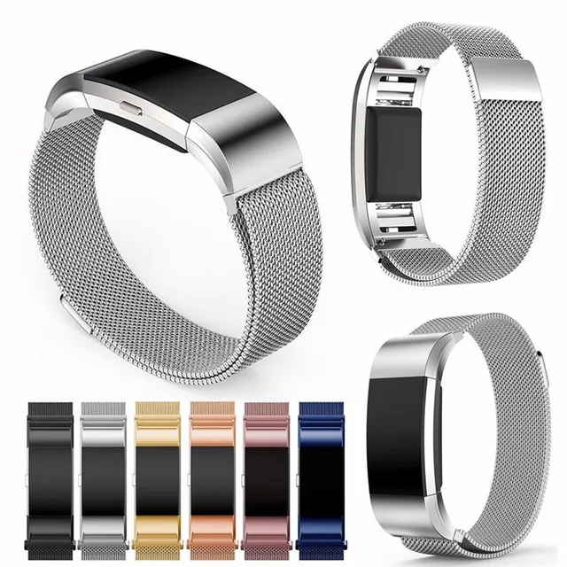| [해외] Milanese 루프 자기 시계 밴드 핏 비트 충전 2 스테인레스 스틸 금속 팔찌 교체 자석 잠금 메쉬 스트랩 손목 |
